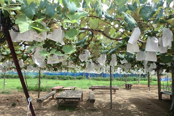 建川ぶどう園では、ひと休みしていただけるよう、ベンチやテーブルもご用意しております。