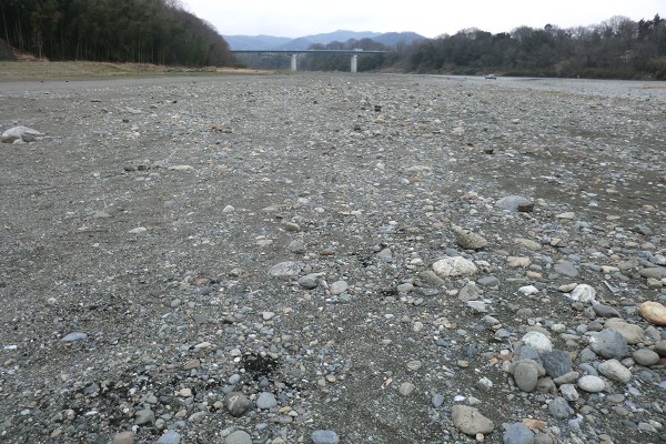 昨年の台風の影響で河原の状況が変わり、玉石が多くなっております。(2016年3月現在)