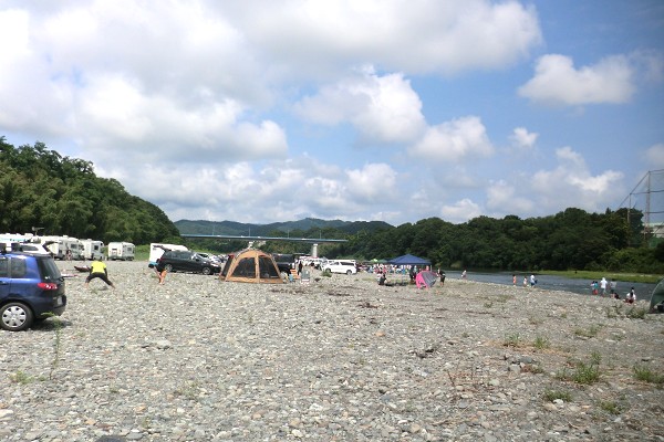シーズンにはキャンプを楽しむ人々で、河原が賑わいます。