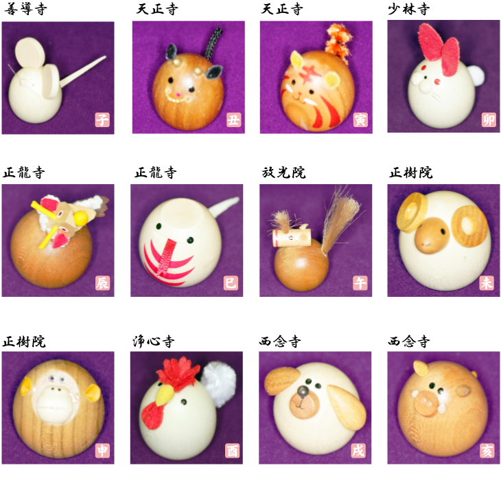 十二支守り本尊の各霊場では、御本尊の十二支をかたどった起き上がりこぼしを、1体800円にて販売しております。