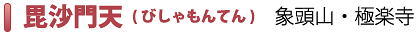 毘沙門天は四天王、また十二天の一神に数えられています。インドでホータン王が毘沙門天に祈って世嗣に恵まれた話や、中国での玄宗皇帝が毘沙門天に祈って外敵を敗走させ、王城の門に毘沙門天を守護神としてまつるようになりました。日本では聖徳太子が四天王寺におまつりしたのが最初で、弘法大師が東寺におまつりしてより多くの寺院に安置されてきました。当山には等身大の古い毘沙門天の青板碑が現存します。