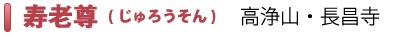 寿老尊は、短身、長頭で美しいひげをたくわえ、やさしい老人の姿をした長寿を授ける福神です。 大きく開いた右手は人々の災難を除き、清らかな心に導くことを意味しています。巻物には人間の寿命の長短、体力の強弱が記録されています。そばにいる玄鹿は神聖な生き物で、健康、長寿の願いをききいれる福徳を表しています。短身、長頭の体つきはお互いに助け合うことによって長寿に恵まれる福徳を教えています。